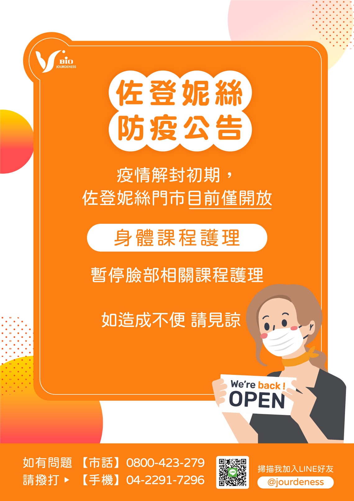 【防疫公告】解封初期 僅開放身體護理