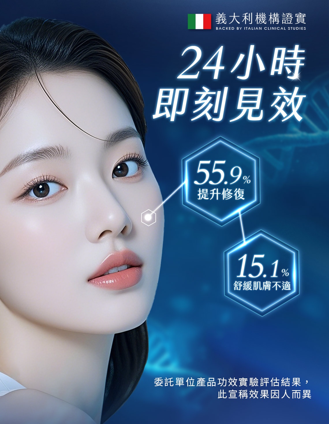 ● 24 小時修復力提升 55.9%; 15.1% 舒緩不適感